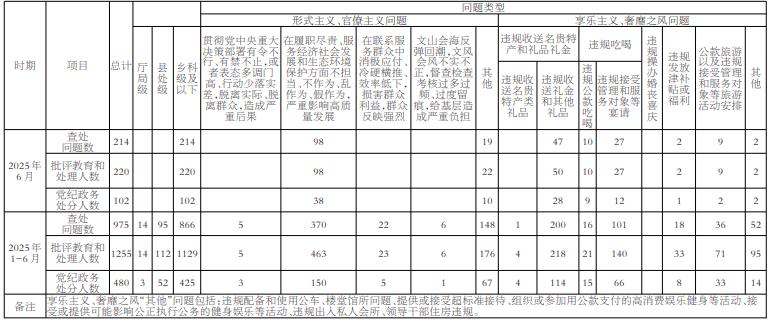 為持續(xù)加固中央八項(xiàng)規(guī)定堤壩,以嚴(yán)的基調(diào)、嚴(yán)的措施、嚴(yán)的氛圍深入推進(jìn)作風(fēng)建設(shè)常態(tài)化長效化,現(xiàn)將2025年6月全省查處違反中央八項(xiàng)規(guī)定精神問題有關(guān)情況通報(bào)如下: