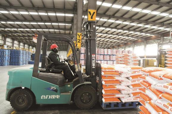 這邊互聯網平臺以大數據為紐帶讓企業煥發新生,那邊在企業貨運車間,貨運機器人助力物流運輸實現高效化。只見一排排成品化肥正等待著完成自己的使命,這些化肥通過拆垛、拆包、輸送、裝車,最終將會運往全國各地。