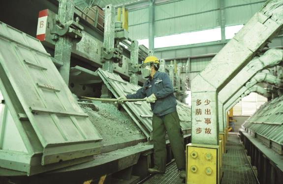 青海百河鋁業有限責任公司的工人開展氧化鋁電解槽邊部整形工作。攝影:鄧建青