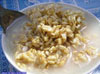 用小碗裝熟牛奶制作酸奶,并特意在碗口滴上幾滴菜油,表層奶皮金黃,油漬點點,潔白如脂,芳香撲鼻,鮮嫩質細,清涼微酸,加一勺白糖,酸中帶甜,更是涼爽可口