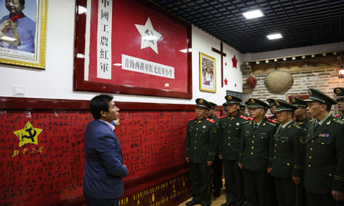 11月3日,武警海東支隊部分官兵代表來到循化縣紅光上村革命傳統教育基地開展“傳承紅色基因,擔當強軍重任”主題黨日活動。