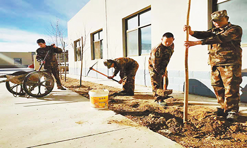4400多米的海拔,從年初刮到年末的大風,寒徹骨髓的氣溫,苦澀的井水,官兵們都可以忍受,他們本來就是軍人,對于環境的考驗早有準備。但是,他們渴望著綠色。老兵走了,新兵來了,從未放棄過讓綠色生命在這里扎根的努力。