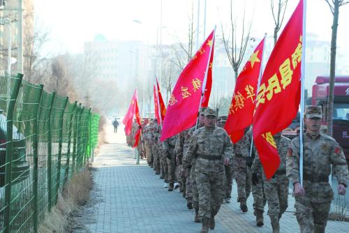 民兵進行野外徒步拉練訓練。西寧警備區供圖