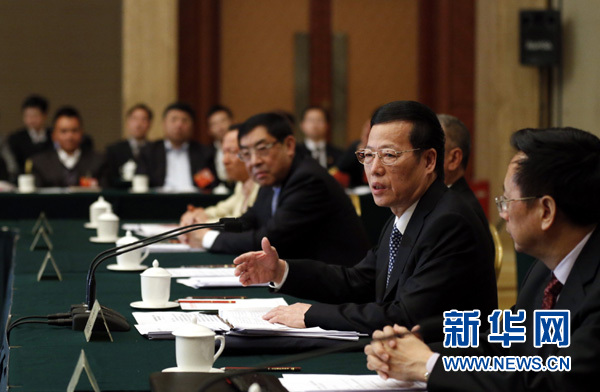 3月4日,中共中央政治局常委張高麗看望出席全國政協十二屆一次會議的民建、工商聯界委員并參加聯組會。 新華社記者 鞠鵬 攝