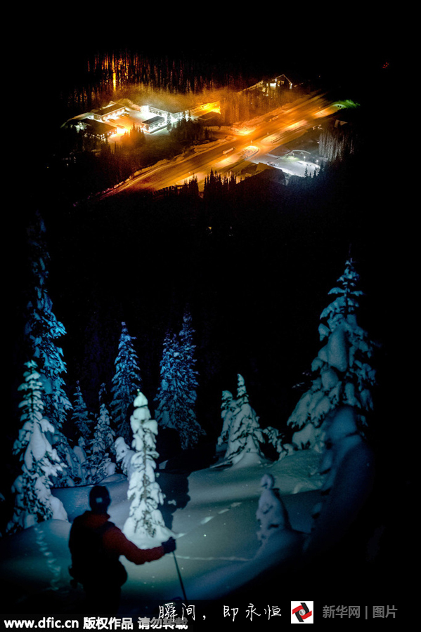 "雪夜精靈"滑雪愛好者深夜踏光滑行