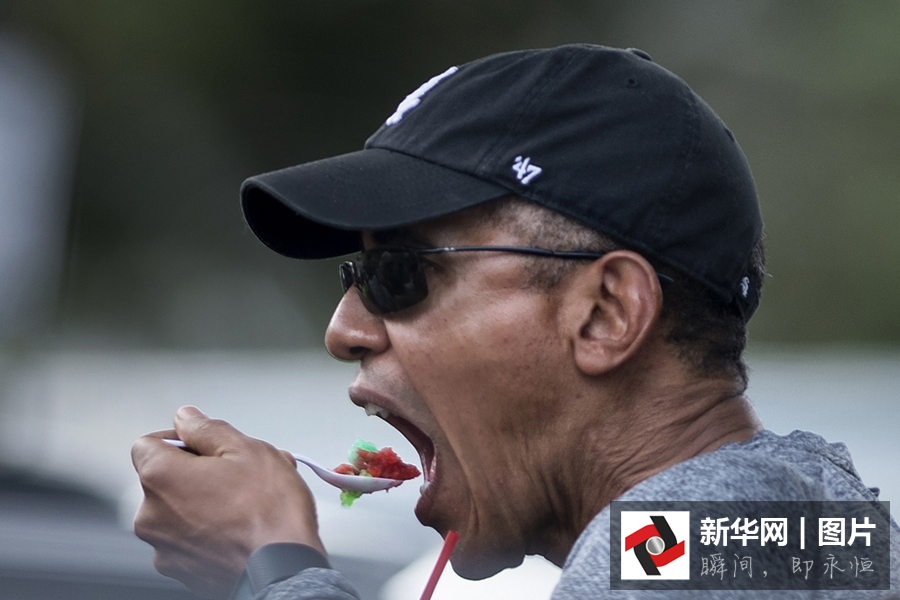 奧巴馬夏威夷度假 大口猛吃刨冰
