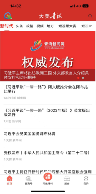 新聞中心還運維青海文明網、青海記者之家、青海統一戰線網等8家省內網站,并為部分縣級新聞網站提供建站、技術支持和內容維護等服務。此外,新聞中心開通了“青海新聞網”“大美青海云”“大美安多”“青海藏語手機報”等微信公眾號、微信視頻號、新浪微博等新媒體賬號。