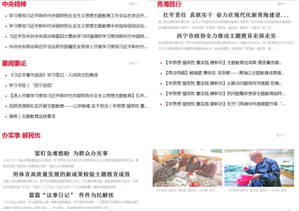 3. 學習貫徹習近平新時代中國特色社會主義思想主題教育宣傳。青海新聞網首頁顯著位置開設專題,及時轉發中央媒體、省垣媒體刊發的主題教育稿件。“學習強國”青海學習平臺開設“主題教育”頻道,大美青海客戶端開設專欄。共計發布相關稿件近5000篇/條。連續推出《主題教育進行時》《關于主題教育,青海省各部門各單位這樣做!》兩個系列專題海報、長圖、H5、SVG等新媒體產品25期,為主題教育營造了濃厚氛圍。