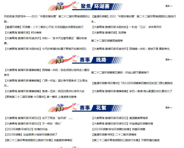 5. 做好第二十二屆環青海湖國際公路自行車賽宣傳報道。立足互聯網定位,發揮融媒體報道能力,將體育賽事報道風格與賽事意義相融合,策劃制作了【聚焦環湖賽】海報集錦系列,并對環湖賽開幕式和賽段進行9場網絡直播,累計觀看人數達8萬余人次,加大了宣傳力度,營造了熱烈氛圍。賽事期間,同步做好集納轉載,及時在客戶端、微信公眾號等多平臺進行相關報道的轉載,為廣大網友提供最新賽事信息,取得良好傳播效果。