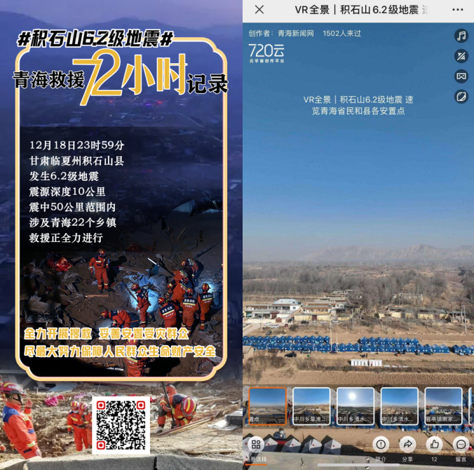 VR全景|積石山6.2級地震 速覽青海省民和縣各安置點