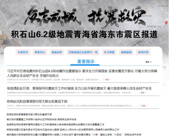 以上為專題《積石山6.2級地震青海省海東市震區報道》截圖