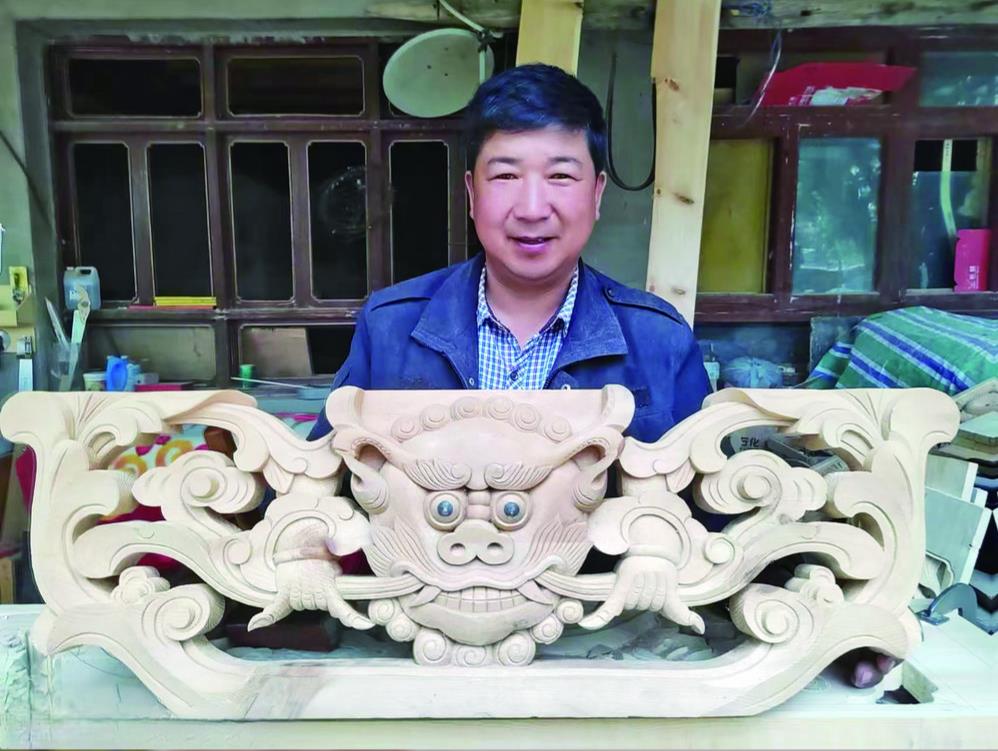 隨著年齡的增長,黨國平越來越迷戀木雕技藝。一次偶然的機(jī)會,黨國平與貴德傳統(tǒng)木雕第三代傳承人楊延春相識,并拜他為師。“師父從小偏愛繪畫,在學(xué)畫的過程中了解到古建筑木雕藝術(shù),隨之產(chǎn)生濃厚興趣,開始學(xué)習(xí)研究這項技藝。和他相遇,偶然中也有必然,因為我始終對貴德傳統(tǒng)木雕保有一份執(zhí)著和熱情。”