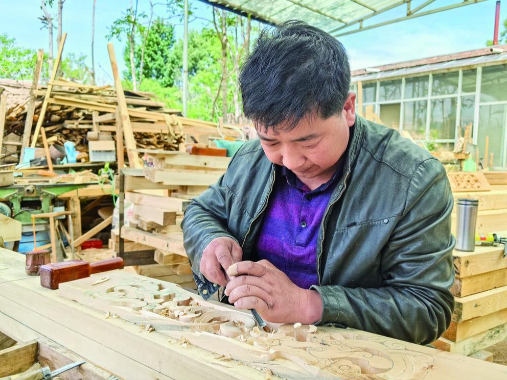 小滿剛過,走進(jìn)海南藏族自治州貴德縣河?xùn)|鄉(xiāng)好運(yùn)來木雕加工坊,淡淡的木香彌漫小院,黨國平站在工作臺前,雕刻刀、木槌在木板上游走,一片片木屑紛飛,平平無奇的木板一點(diǎn)點(diǎn)煥發(fā)出靈動生機(jī)。