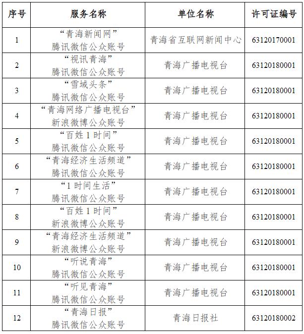 附件:青海省互聯(lián)網(wǎng)新聞信息服務(wù)單位許可信息