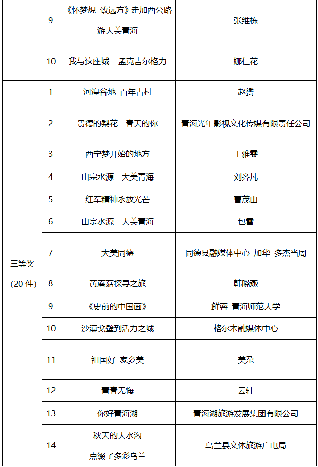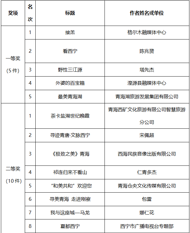 附件:第二屆“西部礦業杯”“你好,青海”網絡短視頻比賽評審結果