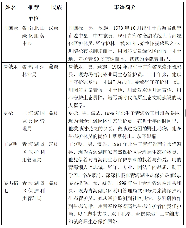 擬選樹青海省“最美生態管護員”名單