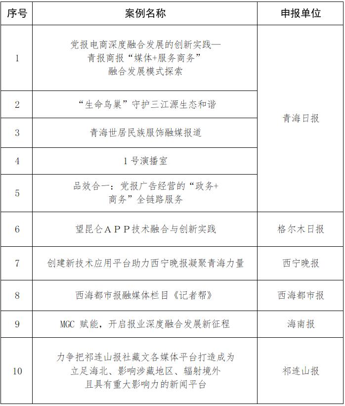 附件:青海首屆報業(yè)深度融合發(fā)展創(chuàng)新案例擬入選名單