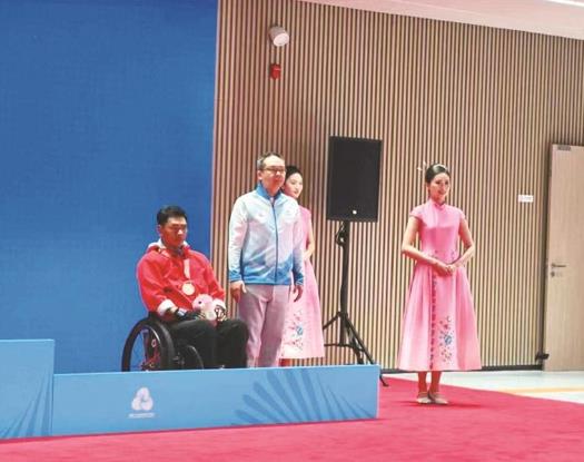 旦正文秀獲得男子鐵餅F52級決賽銅牌。省殘聯供圖