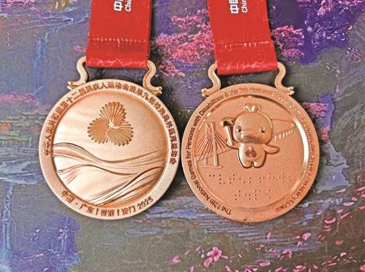 旦正文秀在全國第十二屆殘疾人運動會暨第九屆特殊奧林匹克運動會上獲得的兩枚銅牌。陳富紅 攝