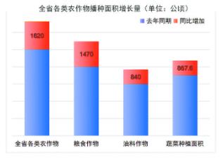截至6月底,全省各類(lèi)農(nóng)作物播種面積57.89萬(wàn)公頃,同比增加1620公頃,是近年來(lái)播種面積最多的一年,其中,糧食作物增加1470公頃,油料作物增加840公頃。