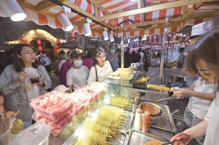 不僅特產店銷售火熱,涼爽的天氣讓西寧的夜更加熱鬧。傍晚,西寧市各小吃街迎來一天中最熱鬧的時刻。一天的旅程結束,游客一邊品嘗著青海特色小吃,一邊交換著旅途見聞。在新千美食廣場、唐道·637街區、力盟商業街區等夜市小吃街,各地口音交織在一起。景區酒店外,旅游大巴車一字兒排開的場景,讓市民感受到青海旅游的熱力值。