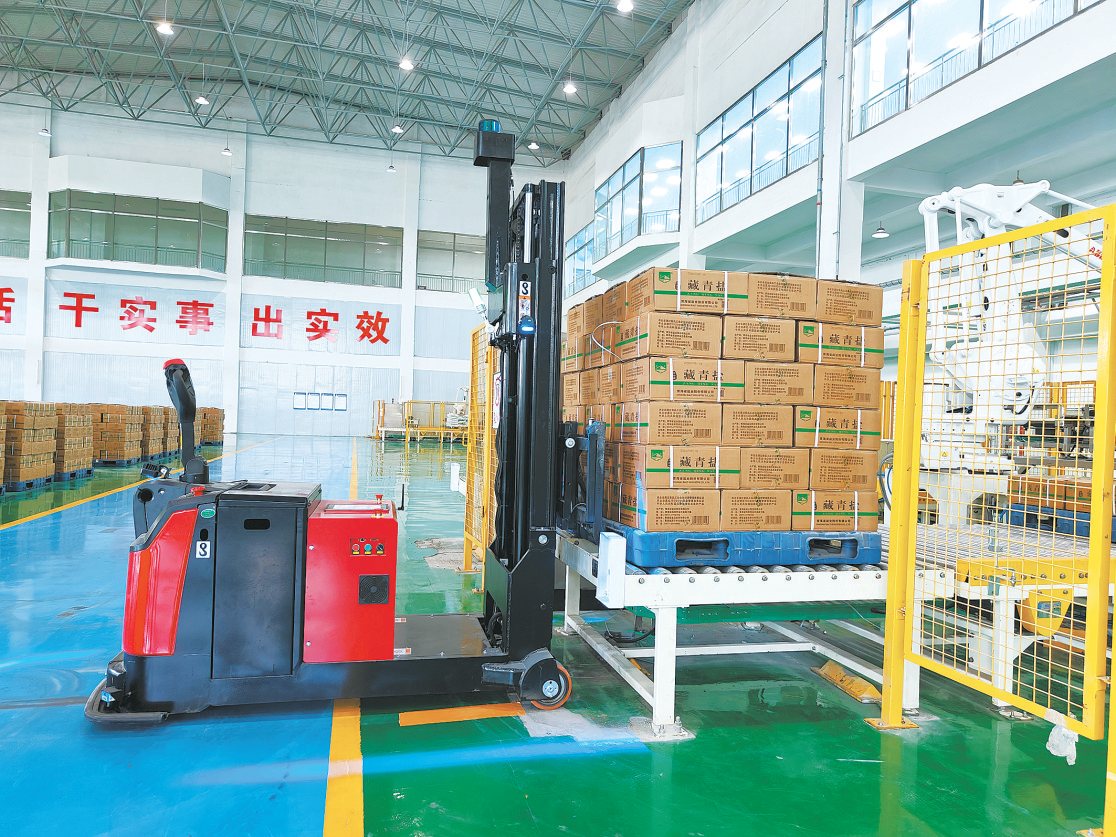 “企業敢為人先,打造數字化定制管理,通過AGV自動導引叉車,實現了訂單庫存動態時實關聯、更新和產品搬運出入庫全流程自動化,生產輸送線出口與成品庫區域內無工作人員,訂單數據、生產數據、庫存數據、發貨數據全閉環,提高了工作效率。”青海鹽業茶卡制鹽分公司安全生產質量室主任李四勇介紹。