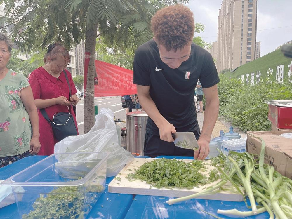 8月4日,一名居民走向青海循化拉面人的愛心拉面點,得知拉面不要錢,他豎起大拇指連連點贊。來自河北的網友“@無悔青春”說:“我就在拉面人身邊,真心感謝他們。”