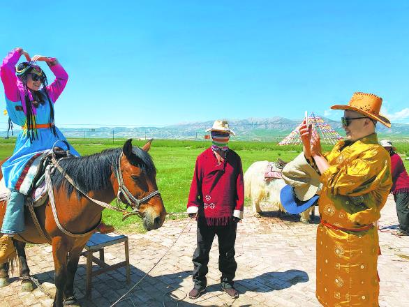 “天下江河皆東去,唯有此水向西流,故而得名‘倒淌河’……”不遠(yuǎn)處,可以聽到,景區(qū)導(dǎo)游繪聲繪色講述著跟景區(qū)有關(guān)的自然風(fēng)貌、風(fēng)土人情、文化傳說,向遠(yuǎn)道而來的游客進(jìn)行推介。