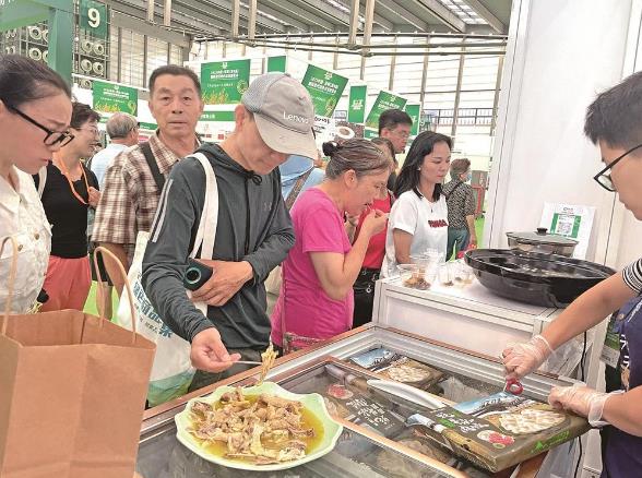 “大家都來嘗一嘗,這是用青海當地種植的土豆生產的寬粉,口感勁道還是綠色有機食品。”公司銷售經理王勝將煮熟的寬粉遞給逛展觀眾品嘗。隨著試吃的人數不斷增多,展臺前被圍得水泄不通。