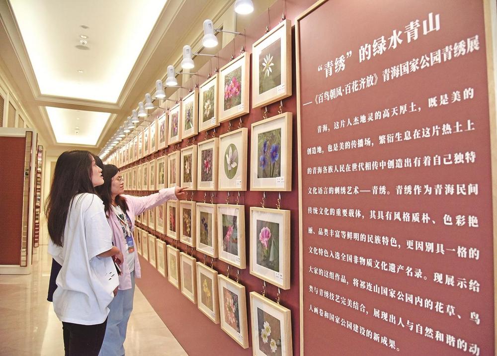 青繡展——《百鳥朝鳳·百花齊放》展現出人與自然和諧的動人畫卷。李娜 攝