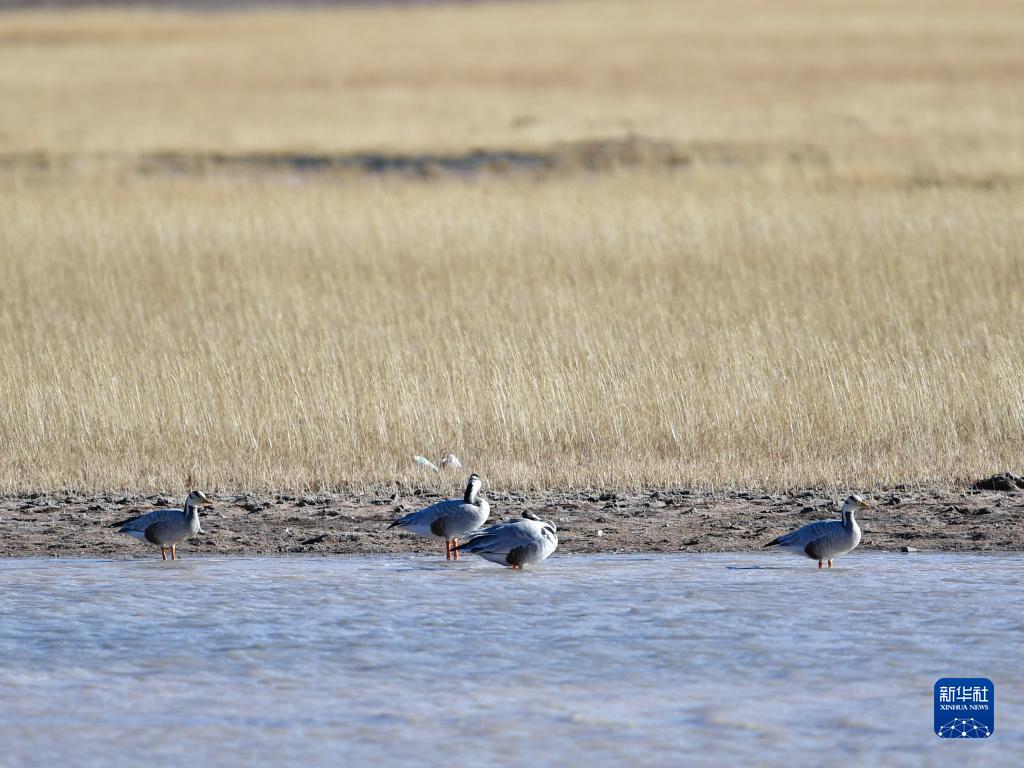 2020年10月30日,在青海省果洛藏族自治州瑪多縣境內的三江源國家公園黃河源園區,斑頭雁在水中休憩。新華社記者 張龍 攝