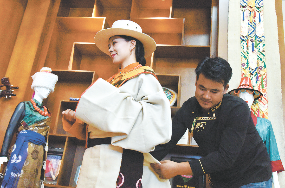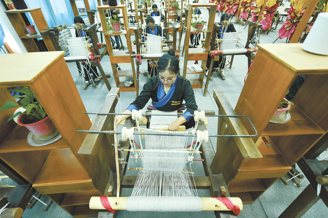 目前,氆氌不僅普遍用于當(dāng)?shù)匕傩盏娜粘I睿遥谶M一步挖掘文化價值和商業(yè)價值后,氆氌編織還成為了婦女致富的好幫手。