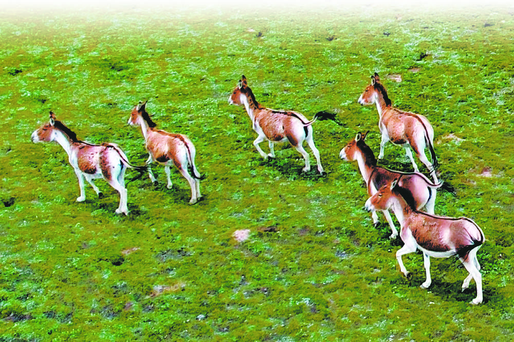 長江源區的藏野驢(7月26日攝,無人機照片)。新華社記者 劉詩平 攝