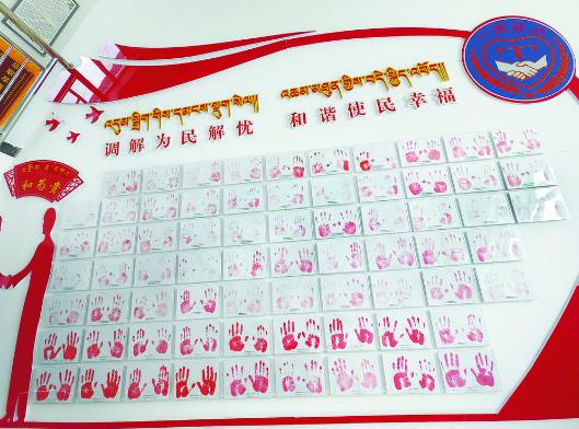 8月26日,記者走進同德縣“一站式”市域社會治理綜合服務中心,映入眼簾的是一面“和解墻”上滿滿的手掌印。“我們調解的當事人和解之后,就會在這面‘和解墻’上留下他們的手掌印,并在手掌印上簽名,表示握手言和。”“一站式”市域社會治理綜合服務中心工作人員多杰才讓向記者介紹。