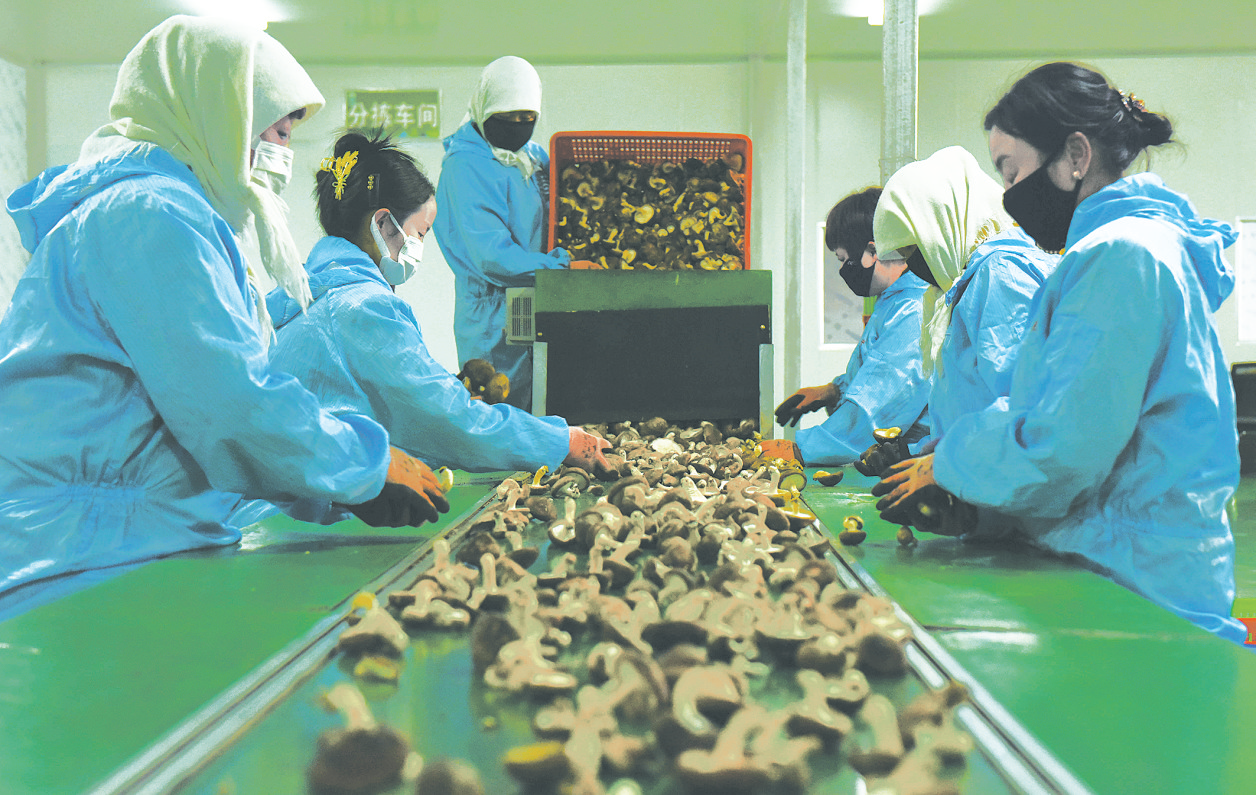 今年60歲的祁海藍(lán)也在家門口找到了一份穩(wěn)定工作。“我今年三月剛來(lái),家離這里不遠(yuǎn),這里有需要了就來(lái)務(wù)工每天掙個(gè)七八十元,好得很。”祁海藍(lán)邊說(shuō)邊動(dòng)作麻利地剪去香菇桿,園區(qū)內(nèi)會(huì)將品相不好的香菇統(tǒng)一做烘干處理,烘干前需要將香菇桿剪去。