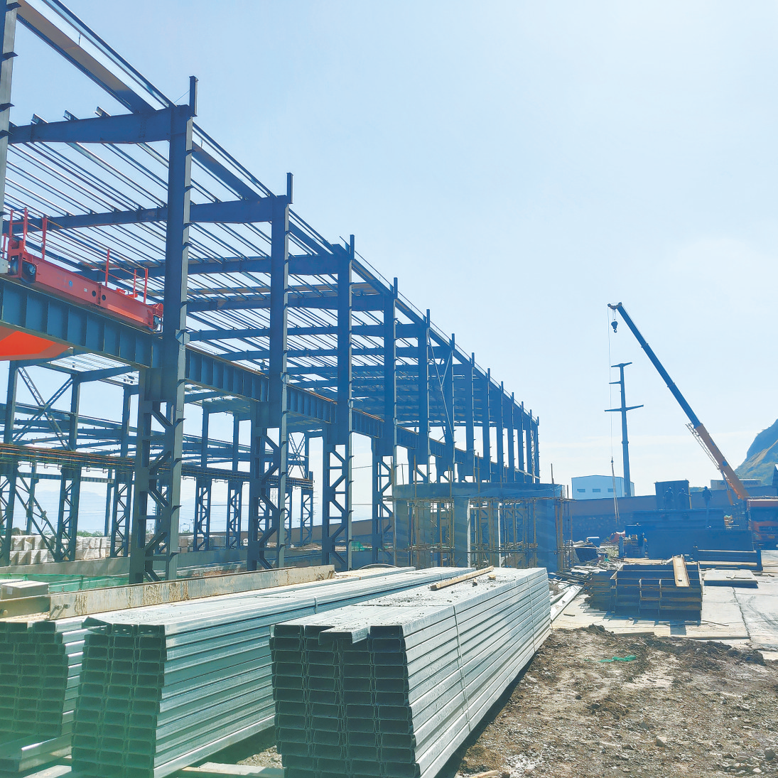 民和光大炭素有限公司總投資4800萬元、年產5萬套新能源電池負極材料用坩堝項目正在進行鋼構安裝;