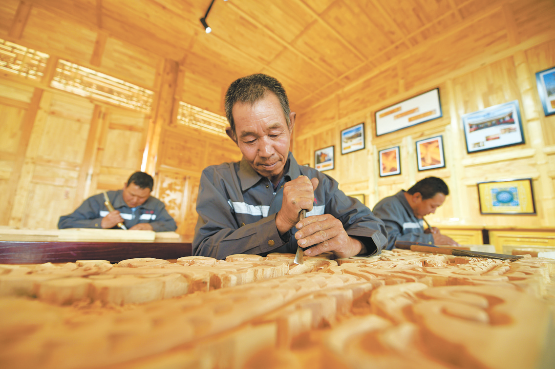 驅(qū)車來到五峰鎮(zhèn)后頭溝村扶貧車間,這里刨木機(jī)、木工雕刻機(jī)等機(jī)器一應(yīng)俱全,工人們正忙得熱火朝天。許多匠心獨具的工藝品錯落有致地擺放在廠房兩側(cè)。據(jù)了解,易地搬遷后,后頭溝村積極打造木軒加工車間,承擔(dān)了古建修復(fù)、藏式家具制作、高檔木質(zhì)門定制等眾多木工業(yè)務(wù),產(chǎn)品已銷往大通、湟中、平安等周邊許多區(qū)縣。