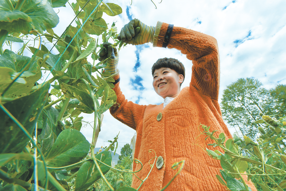 沿著鄉(xiāng)間小道,漫步在林川鄉(xiāng)唐日臺村荷蘭豆種植基地,綠油油的豌豆尖鋪滿了田野,滿眼綠意,生機(jī)盎然。村民穿梭其間忙著采摘、裝筐、搬運、分揀……一派繁忙的采收景象。如今,林川鄉(xiāng)的特色農(nóng)特產(chǎn)品荷蘭豆已經(jīng)遠(yuǎn)銷上海、北京、深圳等一線城市。顆顆綠油油、沉甸甸的“致富豆”掛滿枝頭,不僅給唐日臺村增添了“豐”景,也讓村民們鼓起了“錢袋子”。