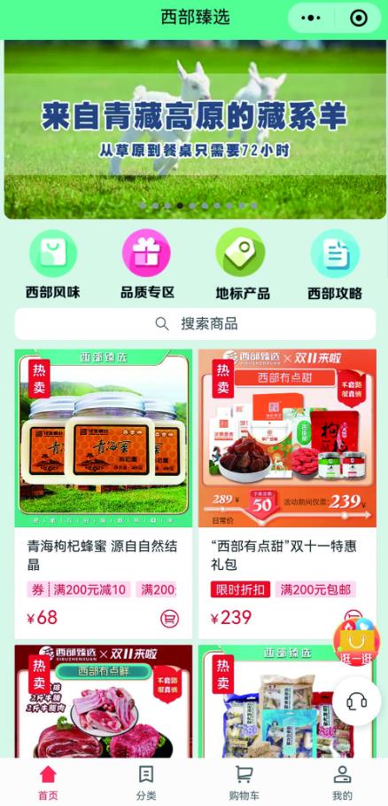 據了解,10月19日至11月30日,省商務廳、省農業(yè)農村廳首次聯(lián)合國內知名電商平臺京東集團,舉辦“青品甄選 金秋惠享——京東·青海農特產品購物節(jié)”活動。推選省內32家特色產品生產經銷企業(yè),線上主推青海省冷水魚、大青鹽、枸杞、牛羊肉、藜麥、青稞、沙棘、乳制品、蜂產品、青藏藥10大類特色優(yōu)勢農畜產品,助推“青貨出青”,提升“青字號”品牌影響力。