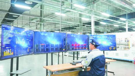 天合光能工作人員正在實施監控生產情況。張鵬/攝