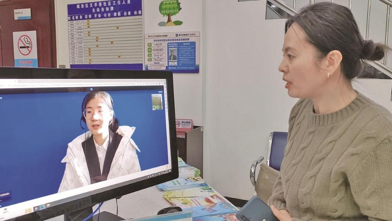 王文寧介紹,當(dāng)聽(tīng)障群眾需要手語(yǔ)服務(wù)時(shí),社區(qū)工作人員點(diǎn)擊顯示器桌面上的“天語(yǔ)云”鏈接,然后再點(diǎn)一鍵呼叫,系統(tǒng)后臺(tái)會(huì)立即響應(yīng)。隨后,辦事的聽(tīng)障群眾可以通過(guò)顯示器遠(yuǎn)程與值守在后臺(tái)的手語(yǔ)老師實(shí)時(shí)連線,用手語(yǔ)表達(dá)自己的需求,這時(shí)窗口工作人員可以實(shí)時(shí)聽(tīng)到手語(yǔ)老師的解說(shuō)。