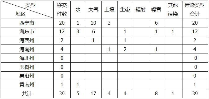 青海新聞網·大美青海客戶端訊 12月8日,中央第五生態環境保護督察組向我省交辦了第十六批群眾信訪舉報件共39件,均為來電件,其中交辦重點關注件4件。交辦的39個信訪舉報件涉及我省5個市州,其中西寧市20件、海東市12件、海西蒙古族藏族自治州2件、海南藏族自治州4件、黃南藏族自治州1件。群眾舉報反映問題涉及噪音污染8件、生態破壞4件、大氣污染17件、水污染5件、土壤污染4件、其他污染1件。截至目前,中央第五生態環境保護督察組向我省交辦的第十六批群眾信訪舉報件已經移交相關市州和部門,各地和相關部門正在按照程序抓緊辦理。