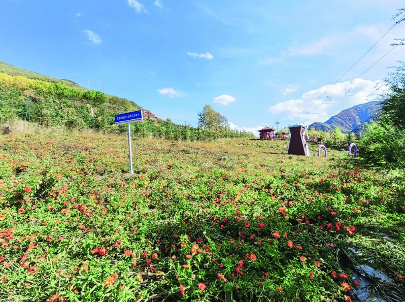 蓮花山和青沙山環(huán)繞下的石碑瑞豐花海景區(qū)內(nèi),一排排青磚灰墻的農(nóng)家小院整潔有序,玻璃滑道流水潺潺,夏日里的燦爛花海和田園風(fēng)光是游客體驗(yàn)山野樂(lè)趣的“網(wǎng)紅打卡點(diǎn)”。