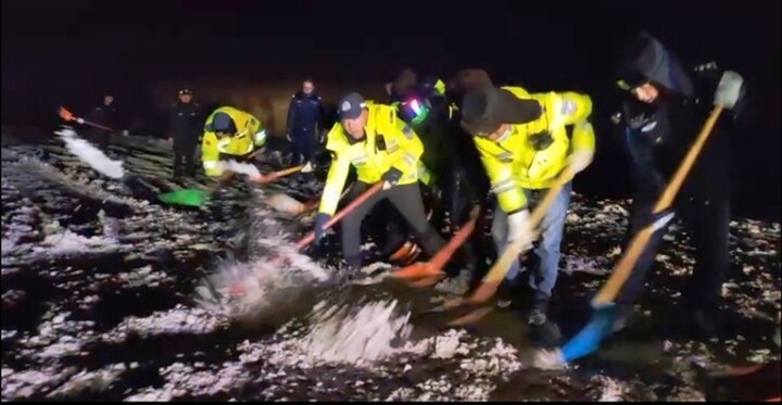 12時左右,雜多縣公安局交警大隊、轄區派出所、38名民輔警和負責該路段的公路養護單位十多名養路工人,攜帶鐵鍬到達現場。