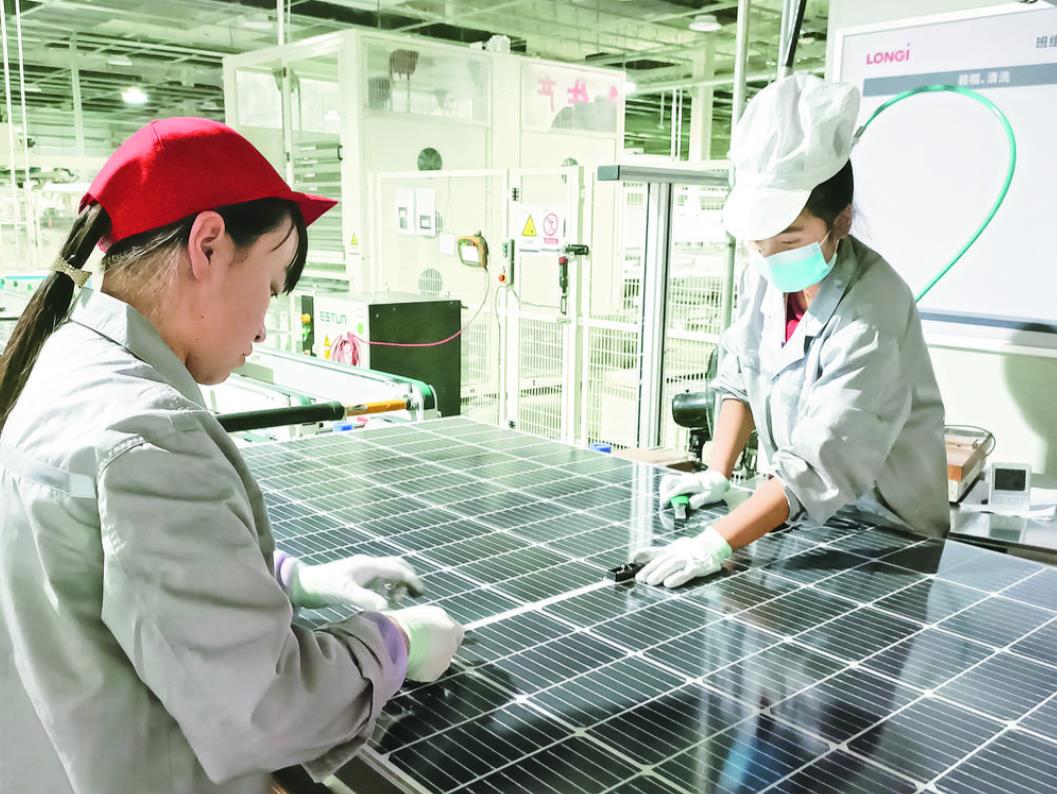 青海新聞網·大美青海客戶端訊 12月18日,記者走進海南藏族自治州共和縣的青海隆基樂葉光伏科技有限公司,企業員工正在生產線上進行焊接、排版、層壓、裝框等工作。