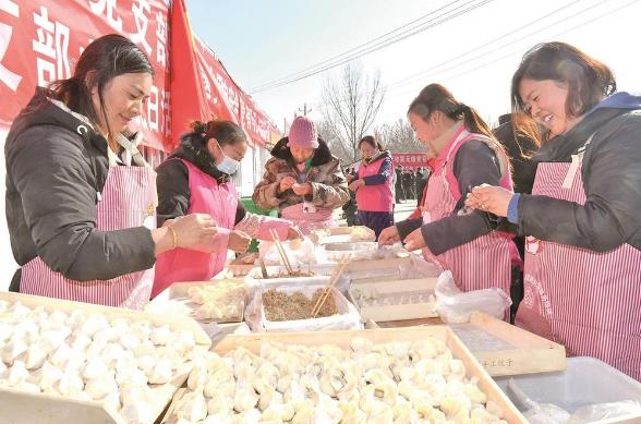 “讓鄉親們在元旦吃頓我們親手包的餃子,就是希望讓他們感受到社會各界的溫暖和關愛。”正值午飯時間,海東市婦聯主席逯淑君一邊忙著下餃子,一邊招呼鄉親吃餃子。