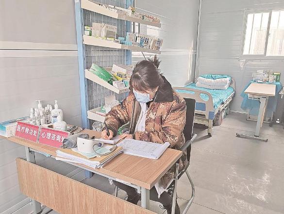 “來到這里的當(dāng)天,我和另一名護(hù)士就摸清了安置點(diǎn)內(nèi)村民們的身體情況。目前,醫(yī)療服務(wù)站內(nèi)的藥品能滿足大家所需,醫(yī)院也會隨時跟我們聯(lián)系,了解缺哪些藥品后及時從縣城運(yùn)送至這里。”白雪說,作為一名黨員,關(guān)鍵時刻就要頂在一線。