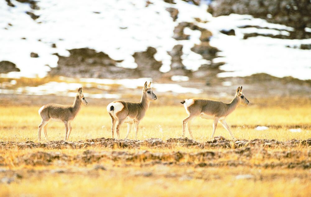 冬日,海西蒙古族藏族自治州格爾木市區(qū)東南80多公里外的秀溝山上成群的巖羊在山坡上覓食,山腳下的駝路溝里三五成群的藏原羚悠閑自得地在草原上散步,它們靈動(dòng)的身影,給高原增添了勃勃生機(jī)。這幾年,格爾木不斷加大對(duì)生態(tài)環(huán)境和野生動(dòng)物的保護(hù)力度,當(dāng)?shù)厝罕妼?duì)生態(tài)、野生動(dòng)物的保護(hù)意識(shí)大幅提升,境內(nèi)各類(lèi)野生動(dòng)物種群、數(shù)量不斷增多。如今,在格爾木境內(nèi)很多區(qū)域,以前難覓蹤跡的野生動(dòng)物頻繁現(xiàn)身,黃羊、巖羊、藏羚羊、藏野驢等珍稀野生動(dòng)物成群結(jié)隊(duì)跑到路邊覓食,絲毫不受過(guò)往車(chē)輛的影響,構(gòu)成了一幅人與動(dòng)物和諧相處的生態(tài)畫(huà)卷。