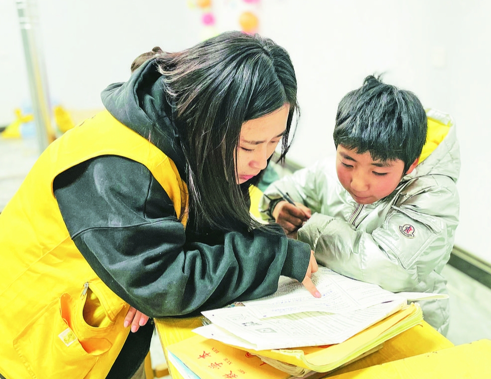 “這個安置點有20多名學生,為了方便學生回家后寫作業學習,村里就在這間大平房里放了十幾張課桌,安排了一個臨時教室,我和另一名志愿者負責輔導功課。”何盼紅說。