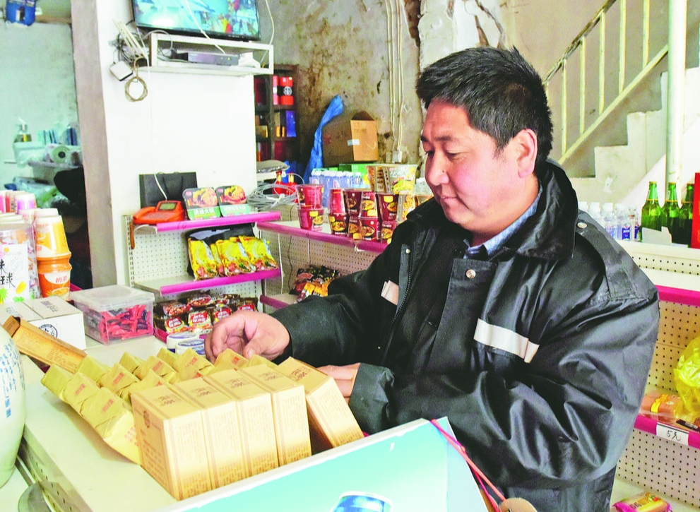 青海新聞網·大美青?蛻舳擞 “水2塊、面包10塊,一共12塊,可以掃碼付款。”1月6日,臨近中午,在海東市民和回族土族自治縣官亭鎮街道上的一家超市里,老板閆才青送走顧客后,趕忙騎著電動車回到“家”里吃午飯。